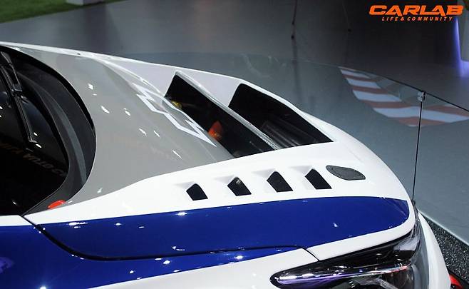엔진은 최고출력 380마력을 발휘합니다. 작은 엔진이 고출력을 뿜어내는만큼 열도 엄청나게 뿜어내기 때문에 차체 곳곳에는 커다란 공기 배출구가 마련된 것을 볼 수 있습니다. 보닛은 면적 절반이 아예 없다시피하군요.