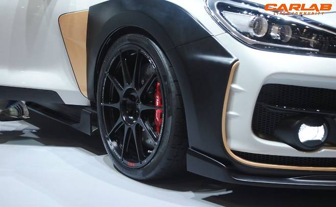 튜익스 튜닝의 미래를 제시하기 위한 컨셉트카이니만큼 비현실적으로 과한 튜닝보다는 자연스러운 튜닝을 추구했는데요. 화려한 색상보다는 유광 및 무광 검정을 활용한 랩핑, 자연스럽게 늘린 앞뒤 펜더 등을 보면 알 수 있습니다.