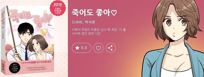 포털사이트 다음(DAUM) 인기 웹툰이었던 <죽어도 좋아> 역시 이와 비슷한 소재로 많은 사랑을 받았다. 젊고 유쾌한 연출로 마니아 팬층을 거느리고 있는 작가 골드키위새의 작품인 <죽어도 좋아>는 여주인공 이루다가 마찬가지로 '반복되는 하루'에 갇히게 되면서 벌어지는 이야기다. 또한 그녀의 타임슬립에 결정적으로 영향을 미치는 사람이 바로 직장상사인 백과장이라는 점에서 고달픈 직장인 독자들의 눈길을 모으기도 했다.