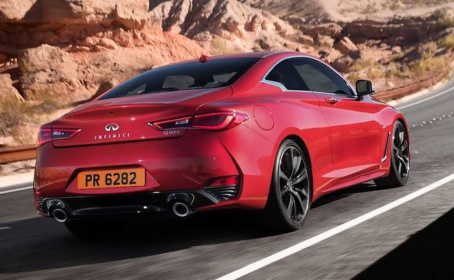 인피니티 Q60 파워트레인은 2.0리터 싱글터보 가솔린 엔진과 3.0리터 트윈터보 가솔린 엔진이 적용된다. 전자 제어식 7단 자동변속기와 조합해 뒷바퀴를 굴린다. 옵션으로 상시 사륜 구동을 선택할 수 있다.