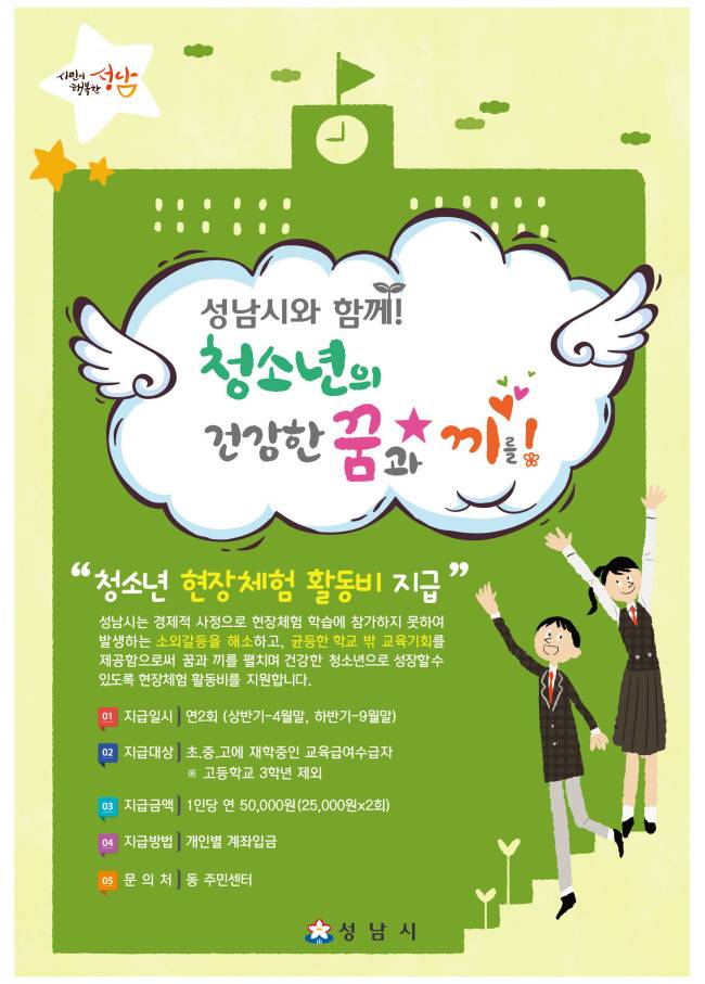 성남시, ì €ì†Œë"층 ìžë..€ 현장ì²'험활ë™ë¹„ ì§€ì›