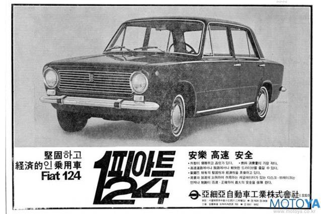 피아트 124의 인기는 이탈리아 본토는 물론, 소련, 인도, 스페인, 터키 등 여러 나라에서 라이센스 생산되었다. 그리고 대한민국도 이 차를 정식으로 라이센스 생산한 국가 중 하나다. 이 덕분에 피아트 124는 라이센스 생산분을 합치면 폭스바겐 비틀 다음으로 세계에서 가장 많이 생산된 자동차이기도 하다. 생산은 舊 아시아자동차공업(이하 아시아자동차)에서 맡았으며, 4도어 세단 형태만 생산되어 1970년도부터 내수 시장에 판매되었다.