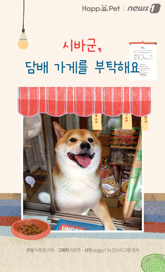 (서울=뉴스1) 이주영 기자,이은주 디자이너 = 우리나라 대표적인 포크가수인 송창식이 1986년에 발표한 노래 '담배 가게 아가씨'는 ‘우리 동네 담배 가게에는 아가씨가 예쁘다네’라는 가사로 시작한다. 이걸 일본의 한 작은 담배 가게에 적용시켜 보면 어떨까. ‘일본 도쿄 담배 가게에는 강아지가 예쁘다네’가 될 것 같다. 도쿄의 담배 가게에서 일했던 반려견 '시바군'의 이야기를 들어보자.