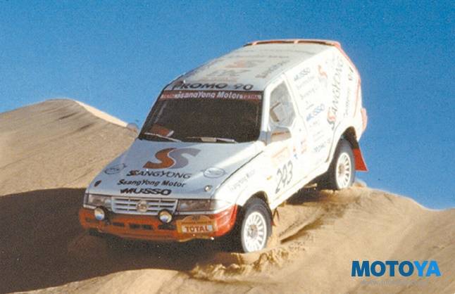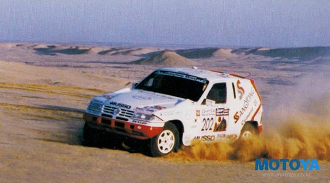 16일간 유럽과 아프리카 등 7개국 총 주행거리 10,000 km의 거친 사막길을 주행하는 제18회 파리~다카르랠리에서 종합 8위의 성적을 거두기도 했다. EX 3.2 모델을 개조해 참가했다. 드라이버로 참가한 김한봉 선수는 우리나라 선수로는 처음으로 완주기록을 세웠다.