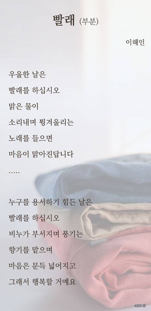 그런가 하면 가지런히 놓여있는 세탁물을 좀 다른 시선으로 바라보는 시인도 있습니다.