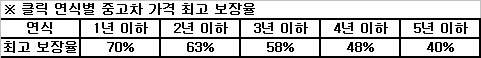 클릭 구매 고객은 구매 후 보장기간(5년) 내 현대차 차량 재구매시 기존 클릭의 주행거리 및 차량 상태에 따라 3년 이하 차량은 차량 구입가격 대비 최고 58%, 5년 이하 차량은 최고 40%까지 중고차 가격을 보장받는 등 신차 구매부터 중고차 처리까지 통합관리를 통해 편리함과 경제적 혜택을 동시에 누릴 수 있다.