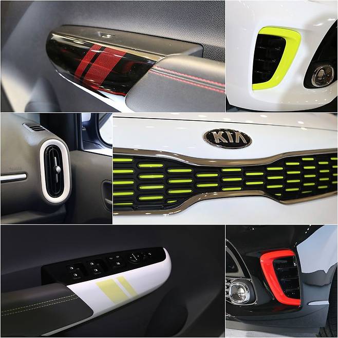 앞범퍼 좌우 흡기구에서 시작해 사이드스커트와 뒷범퍼 하단 디뷰저로 연결되는 레드와 라임, 블랙, 메탈 네 가지 포인트 컬러는 ‘아트컬렉션’ 패키지(20만 원)를 선택 시 적용할 수 있다.