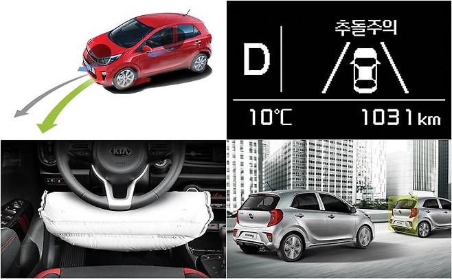 올 뉴 모닝에는 격세지감을 느끼게 하는 안전장비가 다수 적용됐다. 드라이브와이즈 옵션(30만 원)에 포함된 긴급제동 보조시스템과 전방 추돌 경보시스템을 비롯해 토크백터링 시스템과 직진 제동 쏠림 방지시스템 등 일일이 열거하기 힘들 정도. 수년 전 일부 수입차에나 달려있던 장비가 아니던가!