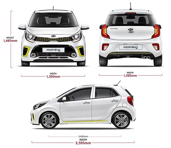 올 뉴 모닝의 크기는 휠베이스만 제외하고 기존 모닝과 정확히 일치한다. 이미 국내 경차규격(길이 3600mm x 너비 1600 x 높이 2000)에 가득 찬 덩치를 갖고 있었기에 더 커지긴 힘든 상황. 대신 휠베이스는 15mm 길어진 2400mm(스파크: 2385mm). 길어진 휠베이스는 보다 넓은 실내공간에 오롯이 쓰였을 터.