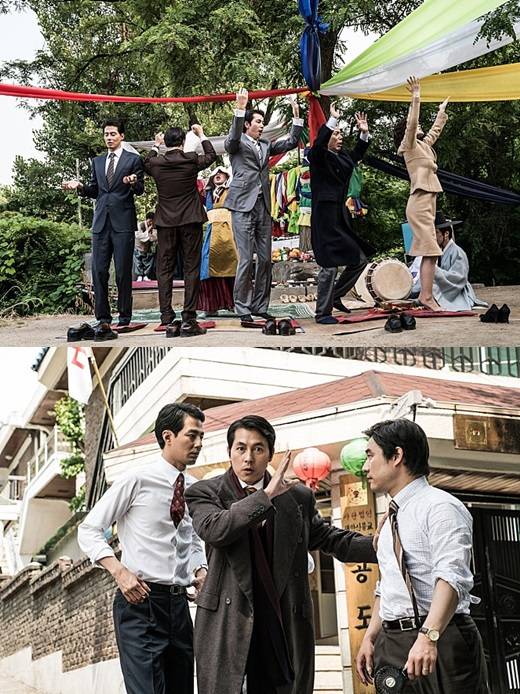 '더 킹'(감독 한재림)의 명장면 중 하나를 꼽으라면 단연 '굿판'이다. 앞서 예고편을 통해 수트를 입은 정우성, 조인성 등 배우들이 굿을 따라하는 모습이 공개돼 예고편은 큰 화제가 됐다. 이후 공개된 '더 킹'의 모습 속에서 한강식(정우성)과 박태수(조인성), 양동철(배성우) 등은 새로운 '킹'을 위한 굿을 벌이는데, 그 장면이 꽤나 흥미롭다.