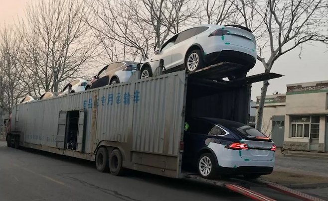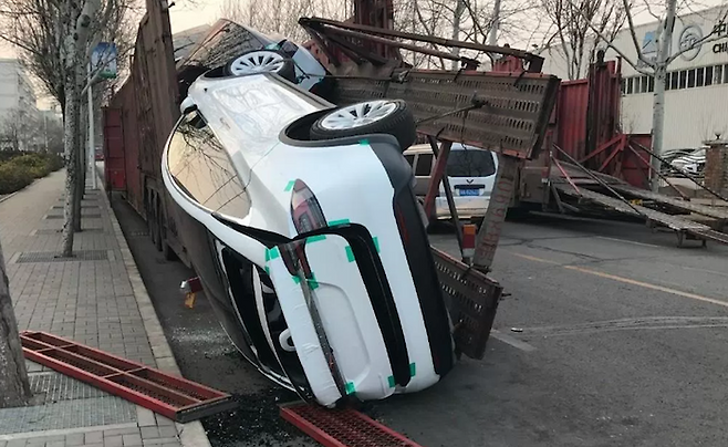 중국에서 2억원이 넘는 가격으로 판매되는 테슬라 모델X 두 대가 탁송 과정에서 어이없는 일로 박살나는 일이 발생했다. 현지 소식통에 따르면 대형 탁송차의 상단 테크가 무너져 내리면서 여기에 실려있던 모델 X가 망가졌고 엄청난 수리 비용이 발생했다.