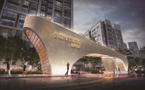 우선 단지의 얼굴격인 문주의 경우 직선과 곡선의 예술적인 패턴을 활용해 모던한 감각을 더하고, 밤에는 야간경관을 통해 더욱 웅장하고, 감동적인 진출부 경관을 연출할 수 있도록 특화할 계획이다.