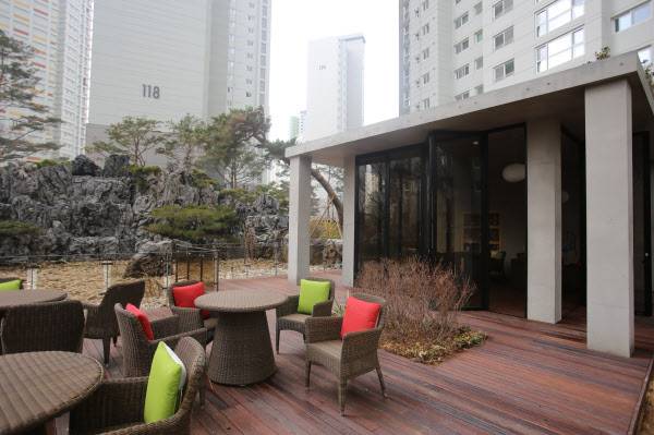 커뮤니티 시설은 단지 중앙 광장에 집중돼있다. 피트니스센터·골프장·GX룸뿐 아니라 키즈카페·북카페, 게스트하우스 사우나 코인세탁실과 암벽등반 시설 등을 갖추고 있다. 2·3단지와 1단지 사이에 높낮이차가 있지만, 지하 주차장은 지하에서 연결돼 있어 이동이 편리하다.