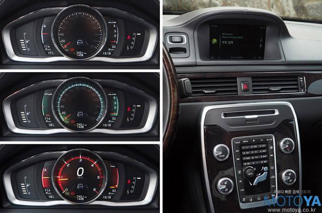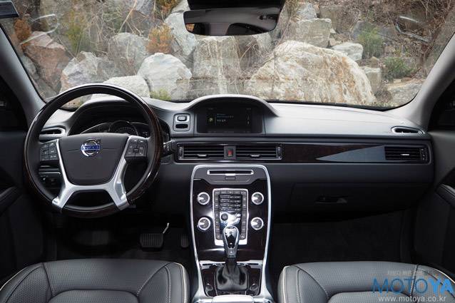 스티어링 휠은 S80 인스크립션 모델만의 전용품으로, 림이 목재로 마감되어 있다. 근래에는 보기 드문 목재로 림 전체를 휘감은 형태를 취하고 있다. 바깥쪽은 목재로, 안쪽은 부드러운 가죽으로 마감하여, 독특한 그립감을 준다. 그러나 패들시프트와 열선 기능을 지원하지 않는다는 점은 아쉬운 부분이다. 계기판은 3가지의 테마를 제공하는 현행 볼보 모델들의 ADD(Adaptive Digital Display)를 사용하고 있다. 센서스 인포테인먼트 시스템 역시 한글을 지원하는 신규 사양으로 변경되었다.