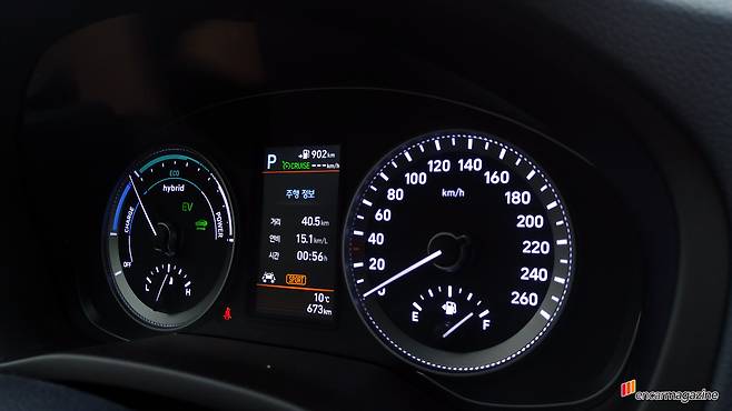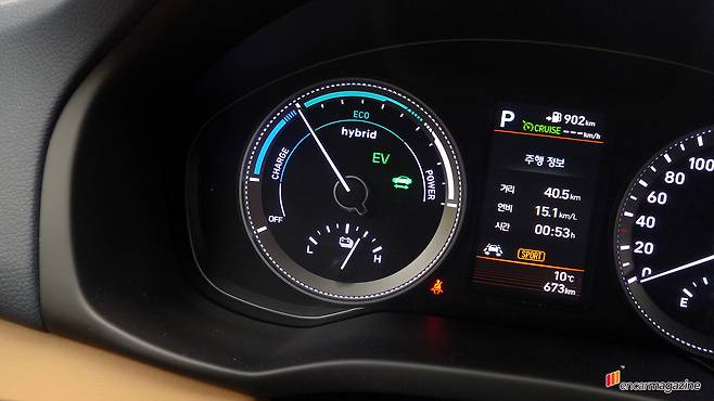 연비가 뛰어난 건 다 이유가 있다. 현대 측에서 제공한 자료를 읊자면 고전압 배터리 용량을 기존 1.43kWh에서 1.76kWh로 증대시키고 배터리의 충방전 효율을 약 2.6% 개선함으로써 모터로만 주행할 수 있는 EV 모드의 가동 범위를 늘렸다. 또한, 전장품의 전력 사용, 엔진 출력 변화 등을 실시간으로 감지해 EV 작동 구간을 보다 효율적으로 제어하도록 로직을 개선했다.