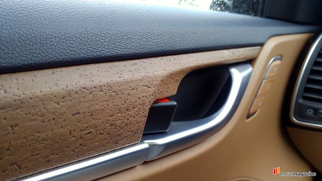 선택 사양인 ‘프리미어 인테리어 셀렉션 패키지’를 고르면 가솔린 모델의 오너가 누리지 못하는 걸 하나 더 누릴 수 있다. 리얼 코르크 도어트림 가니시를 적용해 조금 다른 느낌을 준다. 나무의 성장에 해를 끼치지 않는 방법으로 코르크참나무 껍질만을 채취해 만들었다는 점을 강조하면서 친환경 이미지를 부각하려 한 모양인데 아쉽게도 감성적으로는 큰 장점이 없어 보인다.