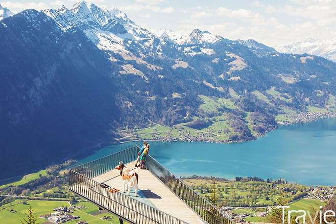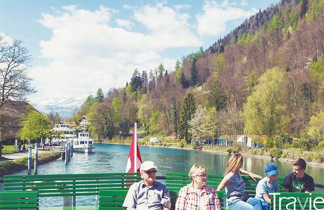 두 호수 사이에 있는 마을인 인터라켄에서 호수를 빼놓을 순 없다. 회에벡 거리를 조금만 지나면 스위스에서 가장 긴 강인 아레강(Aare River)이 나온다. 툰 호수와 브리엔츠 호수를 잇는 강으로 수도 베른까지 흘러간다. 아레강에는 브리엔츠 호수와 툰 호수로 가는 유람선 선착장이 있다. 두 호수 사이에 있는 마을이라는 이름 값을 톡톡히 하는 셈이다. 인터라켄 오스트(Ost) 선착장에서는 브리엔츠 호수, 인터라켄 웨스트(West) 선착장에서는 툰 호수 행 유람선을 탑승할 수 있다. 반짝이는 호수 위의 유람선은 낭만 그 자체. 호수를 둘러싼 아기자기한 마을 풍경과 빙하가 녹아 이뤄진 맑은 물빛을 보고 있노라면 유람선을 교통수단으로 활용하는 그들이 한없이 부러워질 수밖에 없다.
