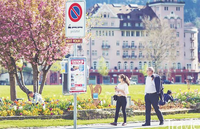 눈을 뜨고 가장 먼저 창문을 열었다. 인터라켄에 도착한 시간은 캄캄한 어둠이 내려앉은 자정. 빛을 지닌 도시의 풍경이 궁금했다. 인터라켄에서 유일하다는 고층 호텔인 메트로폴 호텔(Metropole Hotel)에 머문 덕분이었을까. 어두워서 보이지 않던 회에마테 공원(Hoehe Matte)과 마을 전경, 저 멀리 융프라우의 모습이 눈에 들어왔다.
