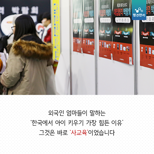 외국인 엄마들이 말하는 '한국에서 아이 키우기 가장 힘든 이유'는 바로 '사교육'이었는데요. 한국의 사교육 열풍 이대로 괜찮을까요. 카드 뉴스로 확인해 보시죠.