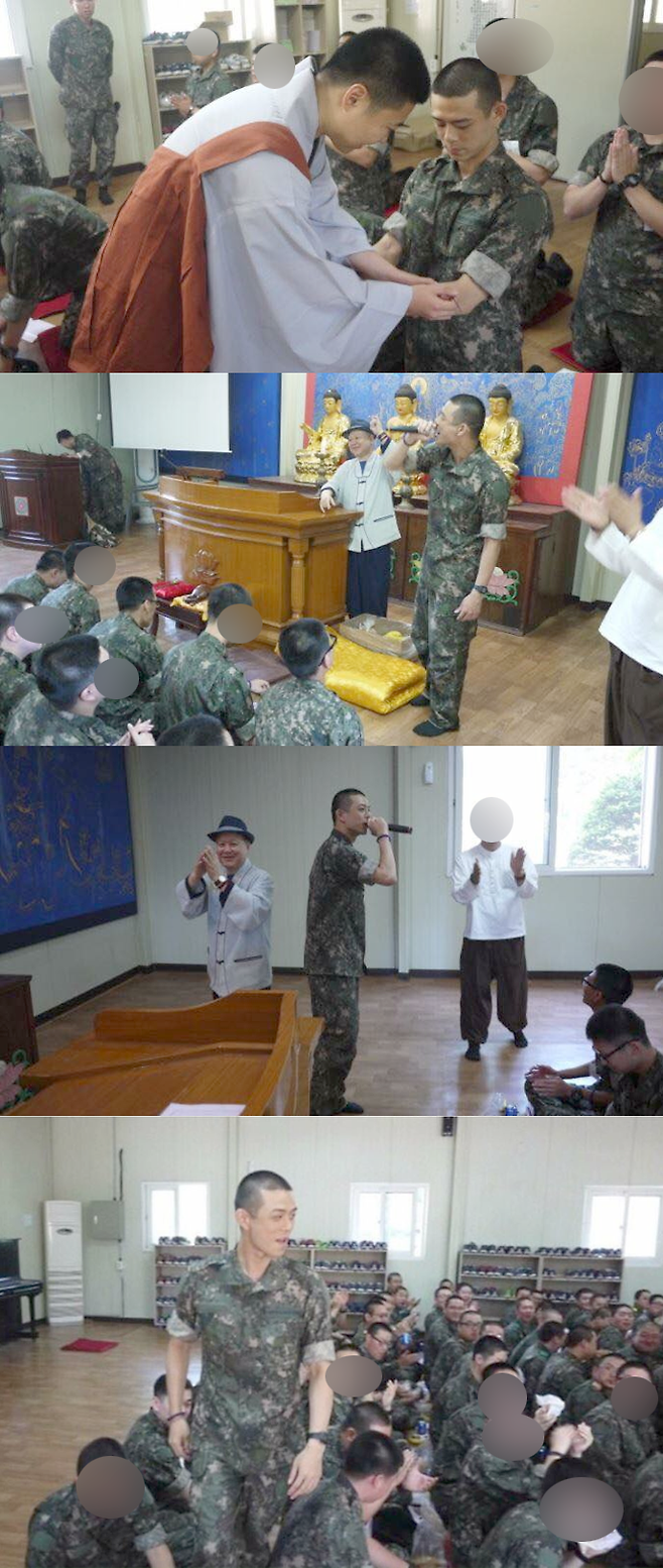 빈지노가 불상과 스님들 사이에서 마이크를 잡은 채 랩을 하는 모습이 사진 속에 담겨 있어 훈련소에서 종교로 불교를 택했을 것으로 예상되고 있다.
