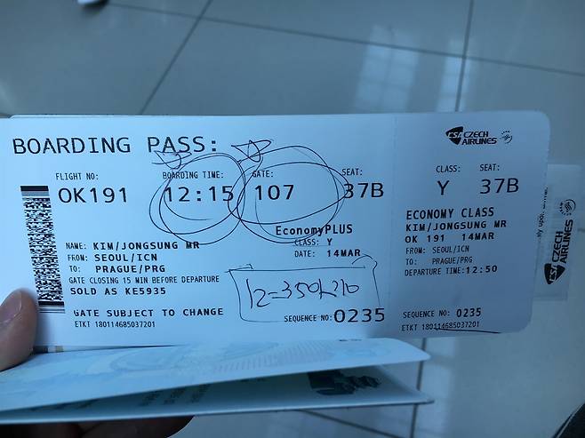 그때쯤 대한항공 소속 스튜어디스가 찾아와 체코 항공 직원에게 문의했더니 ATM 사용이 가능할 것이라고 말했다고 알려줬다. 물론 '내 카드'가 된다는 보장이 없는 터라 들으나마나 한 말이었지만, 모든 문제가 풀릴 예정이라 그 성의가 마냥 고맙기만 했다.