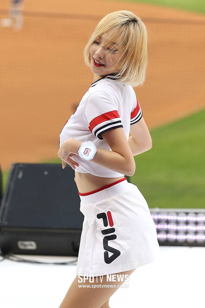 [스포티비뉴스=잠실, 곽혜미 기자] 16일 오후 서울 잠실야구장에서 열린 2017 KBO 리그 두산 베어스와 NC 다이노스의 경기. 두산 치어리더 서현숙이 응원 무대를 펼치고 있다.