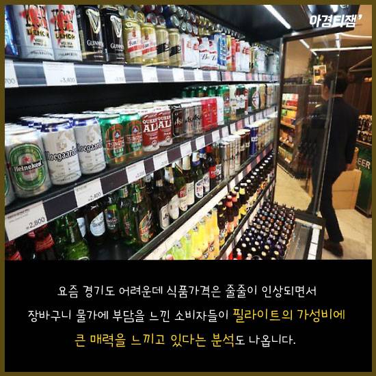 요즘 경기도 어려운데 식품가격은 줄줄이 인상되면서 장바구니 물가에 부담을 느낀 소비자들이 필라이트의 가성비에 큰 매력을 느끼고 있다는 분석도 나옵니다.