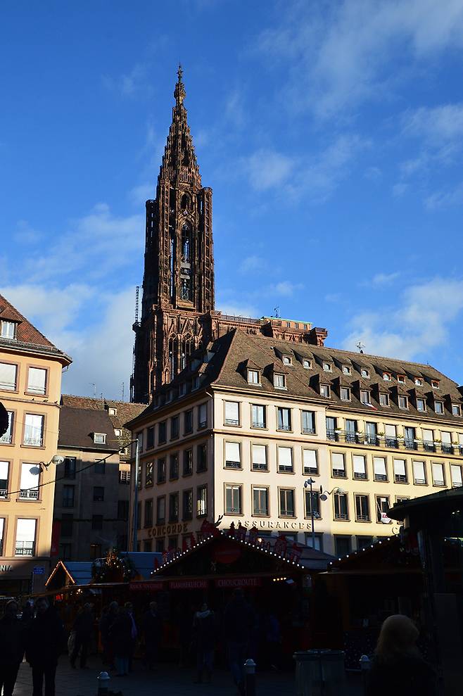 1988년에 구시가 전체가 세계문화유산으로 지정될 정도로 오랜 역사의 도시 스트라스부르. 이 도시의 주요 여행지는 구시가 안에 모두 모여 있어서 나는 천천히 걸어 다니며 둘러보기로 했다. 알자스의 목조 가옥과 강변이 어우러지는 풍경은 보이는 곳마다 그림 같은 풍경이니 나는 걸으면서 카메라를 잠시도 내려 놓을 수 없었다. 나는 큰 길을 따라 한 곳을 찾아갔다. 내가 직진하고 있는 곳은 스트라스부르의 랜드마크, 노트르담 대성당(Cathedrale de Notre-Dame)이었다.