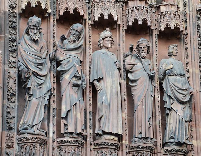 | ▲ 파사드의 인물 조각상. 인물상의 표정과 옷자락의 구김까지 정교하게 조각되어 있다. |