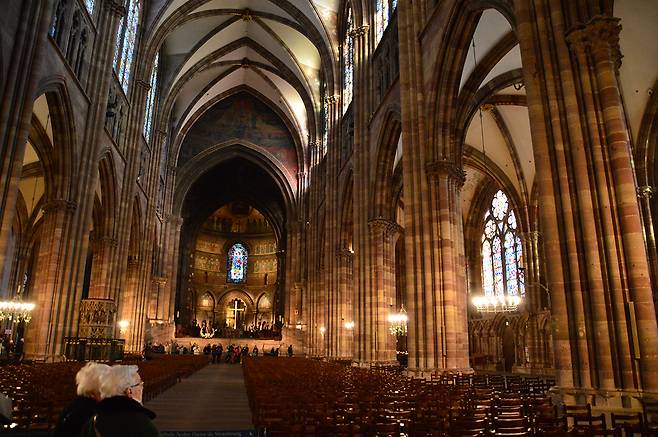 나는 이 위대한 예술품 내부에 들어와 있으면서 마치 다른 세상에 들어와 있는 것 같은 묘한 느낌을 받았다. 그 옛날에 어떻게 이렇게 높고도 저렇게 정교하게 성당을 만들 수 있었을까? 나는 천문시계 앞에 서서 '이 성당 안의 현실이 정말일까?'라는 생각이 들었다. 스트라스부르의 노트르담 대성당은 정말 비현실적인 성당이었다.