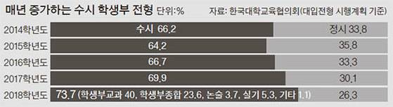 이 때문에 강남 학부모들로 구성된 인터넷 커뮤니티 ‘디스쿨’엔 “대치동을 떠나는 게 대입에 유리한 것 같다” “강남을 벗어나 다른 지역으로 전학하겠다”는 글들이 자주 올라온다. 커뮤니티 대표인 김현정씨는 “서울 소재 상위권 대학에서 학생부 전형을 크게 늘리면서 이런 생각을 가진 학부모가 증가하고 있다”며 “학생부 전형에선 내신이 무엇보다 중요한데, 우수학생이 몰리는 강남 일반고나 자사고 학생들은 상대적으로 불리할 수밖에 없기 때문”이라고 전했다.