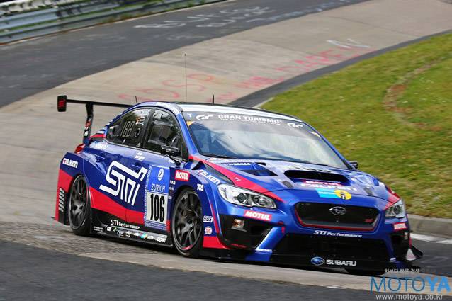 STI는 전년과 같은 4명의 드라이버(카를로 반 담(네덜란드)과 마르셀 라세(독일), 팀 슈리크(독일) 야마우치 히데키(일본))로 출전하여, 예선에서 클래스 2위로 시작했다. 그러나 경기 시작 직후 내리기 시작한 우박과 뇌우 등의 악천후에 의해 경기가 3시간 동안 지연되는 등의 혼선이 빚어졌다. 하지만 STI 팀은 드라이버 반 담이 충돌한 차량을 정교하게 회피하고 야마우치가 클래스 선두를 탈환하는 등, 악조건 속에서도 우수한 기량을 발휘하여, 24시간 동안 총 121 바퀴를 주파했다. 이는 약 3,070km에 이르는 거리다.