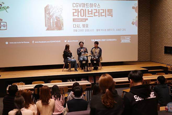 지난 11일 화요일 CGV명동역 씨네라이브러리에서 진행된 라이브러리 톡에는 김현민 기자의 진행 아래 유해진 감독과 함께 장범준과 2집 앨범 작업을 함께 했던 웹툰작가 박수봉 씨가 참석했다.