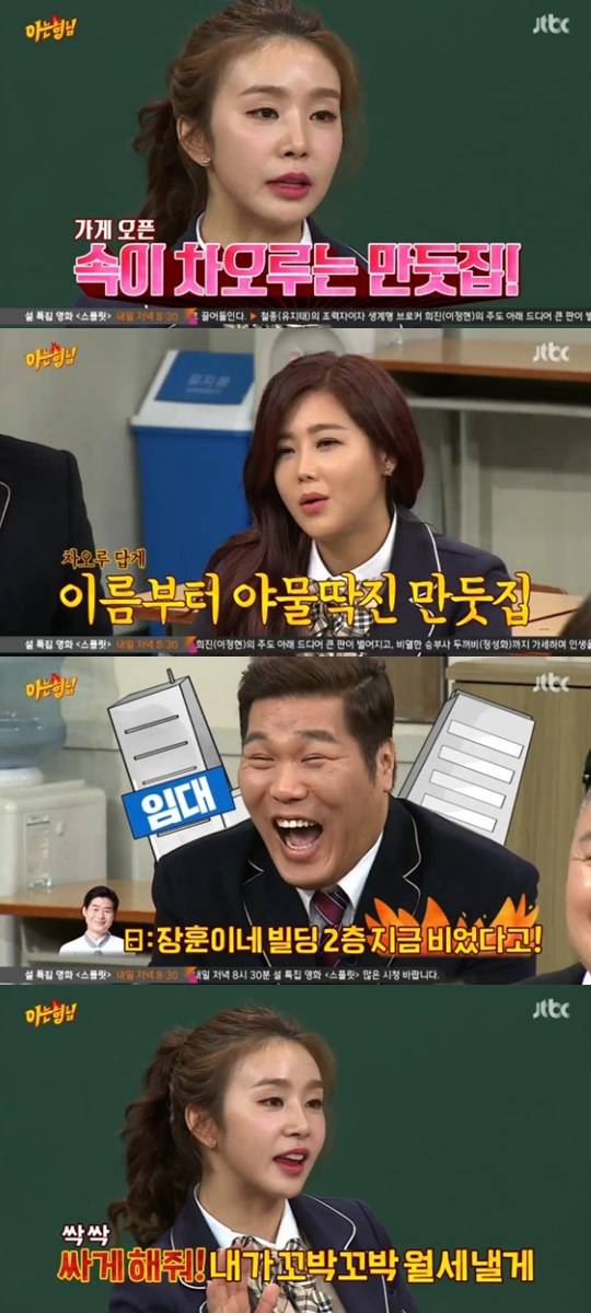특히 차오루는 "돈을 많이 벌어서 만둣집을 차리고 싶다"고 밝혔다. 그는 "2017년 소원이다. '속이 차오루는 만둣집'을 차리고 싶어서 이연복 셰프님께 자문까지 구했다"며 서장훈에게 "장훈이네 빌딩 2층이 지금 비었다더라. 싸게 해달라. 내가 꼬박꼬박 월세 내겠다"고 요구했다. 이에 서장훈은 흔쾌히 허락했다. 차오루가 만둣집 사업을 꿈꾸는 이유는 뭘까. 그는 "연예인이 안정적이지 않다"고 현실적인 대답을 내놨다.
