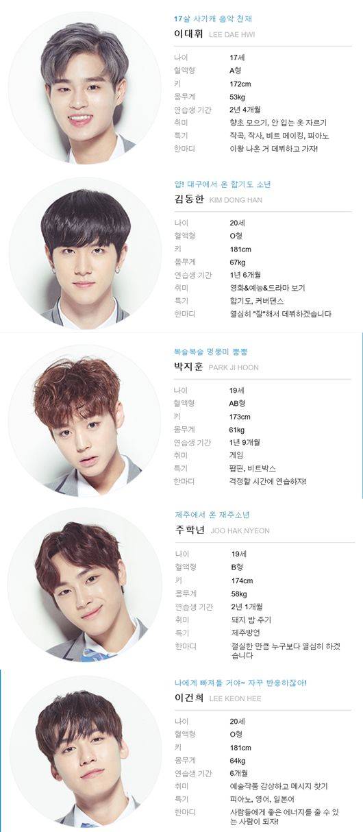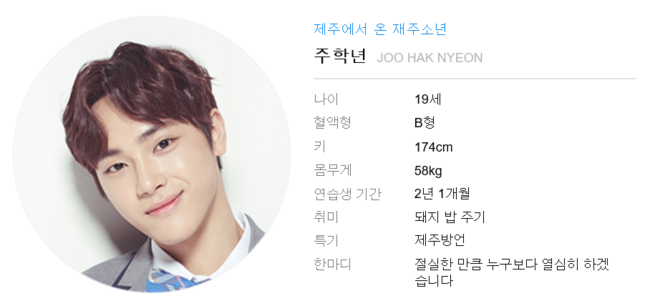 이미 SNS 스타. 인스타그램, 페이스북 등에서 수만의 팔로워를 거느리고 있다. 지방에서부터 커버 댄스 등으로 인기를 끌어, 데뷔를 기다리는 팬들이 꽤 되는 것으로 알려진다. 여초 사이트에서도 심심치않게 언급되며, 초반 인기투표에서도 상위권에 랭크됐다. 외모 역시 훈훈하다. '잘생김' 순위 최상위권을 예상. '소'형 기획사 소속이라 헝그리 정신도 남다를 듯. 시즌1에서 소형 기획사 소속으로 유일하게 멤버로 발탁된 김청하의 뒤를 이을지 기대를 모은다.
