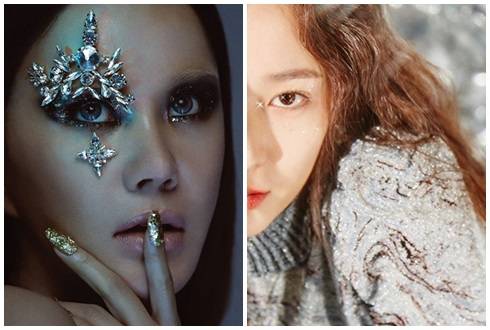 이는 지난해 여러 스타들이 즐겨한 키라키라 메이크업(네일 파츠와 같은 장식을 얼굴에 붙이는 메이크업)에서 이어진 글리터 메이크업이다.