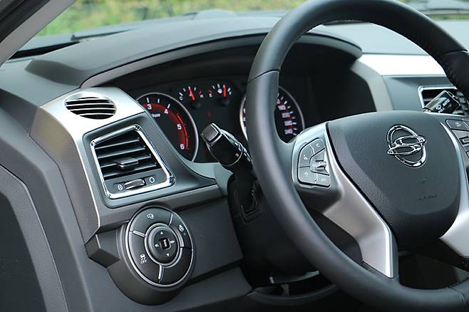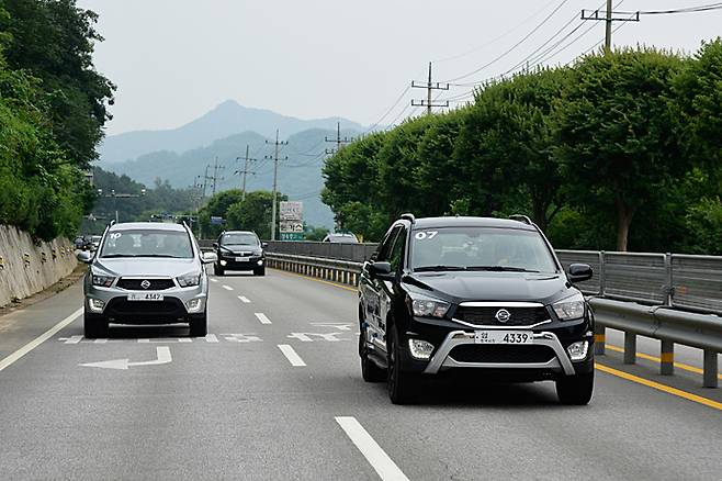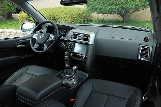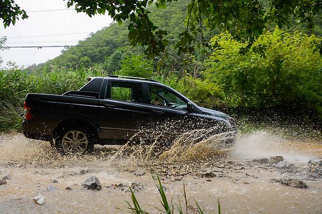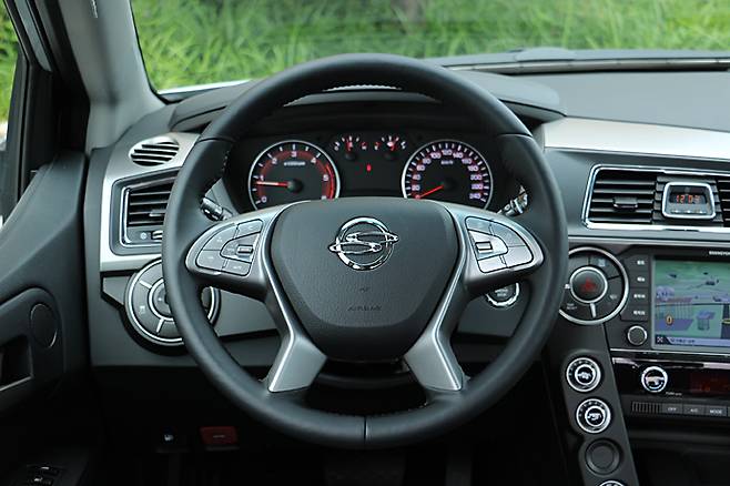 서스펜션은 앞 더블 위시본, 뒤 5링크 타입. 댐핑 스트로크는 길다. 여기에서 코란도 스포츠의 고민이 보인다. 노면의 요철을 확실히 흡수한다고 할 수는 없다. 자잘한 노면의 충격에 민감한 반응을 보인다. 리어 액슬에 리프 스프링을 채용한 것이 아닌가 하는 생각이 들 정도는 아니지만 코란도C와는 분명 다른 세팅이다. 조금은 거칠다는 얘기. 반면 짐칸에 무거운 짐을 실었을 경우에는 역으로 너무 부드러운 세팅으로 느껴질 것 같다. 이 차가 차체를 심하게 흔들며 달리는 타입은 아니기 때문에 이런 형태의 타협을 선택한 것 같다.
