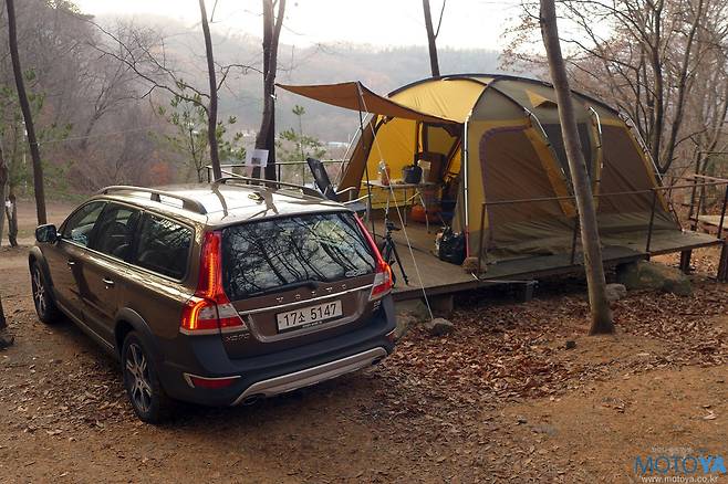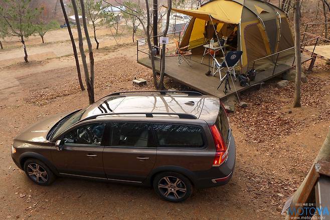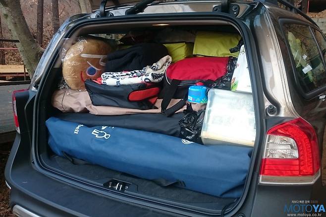 이러한 트렁크 공간은 일상적인 용도에서는 물론, 캠핑이나 아웃도어 활동에서 제 역할을 톡톡히 한다. XC70은 선반만 탈거한 상태에서 4인 가족의 1박 2일 캠핑을 위한 짐들을 무리 없이 수납할 수 있다. 이 과정에서 XC70에 들어간 짐은 4~5인용 2룸 텐트, 이너텐트용 매트 2개, 일반형 캠핑 의자 3대, 슬링 타입 캠핑 의자 1개, 침낭 4개, 롤테이블, 소형 테이블, 다목적 버너, 소형 버너, 5~6인용 코펠 세트, 여행용 가방, 개인용 배낭 2개, 중형 소프트타입 아이스박스, 돗자리, 4인 가족 1박 2일분 식재료, 음료(PET) 8병, 캠핑용 랜턴, 돗자리 등등의 온갖 잡다한 물건들이 모두 수납되고도, 다소의 공간이 남는다.