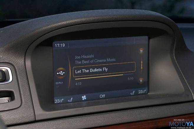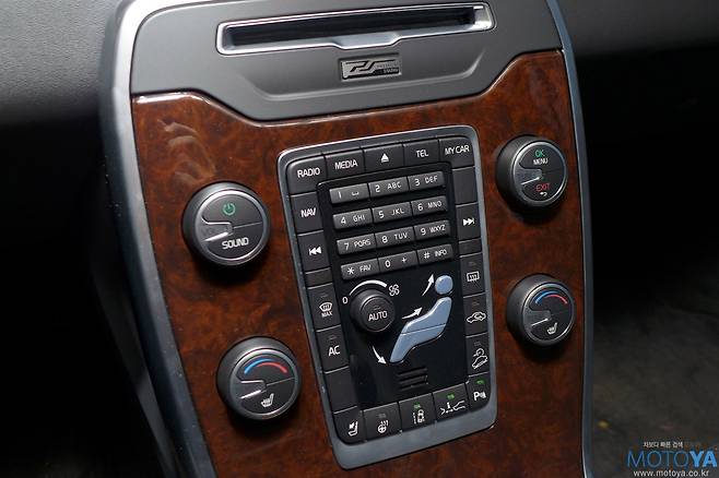 2004년에 출시했던 S40부터 채용되어 볼보 인테리어의 아이덴티티로 자리 잡은 센터스택도 건재하다. 반광 메탈과 번쩍이는 유광 우드 패널로 마무리되어 있다. 볼보의 센서스(SENSUS) 인포테인먼트 시스템이 배치되어 있다. 센서스 인포테인먼트 시스템은 우측 상단의 다이얼과 Enter/Exit 로 구성된 2개의 버튼을 통해 대부분의 조작이 이루어진다. 또한 각 모드 버튼들은 기어 레버 바로 앞의 전화용 키패드를 중심으로 배치되어 있다. 따라서 센터 터널 후방에 다이얼 혹은 조그셔틀이 위치하는 통상적인 입력체계보다 손과 시선의 이동이 비교적 적은 편이 장점이다. 하지만 한글이 일절 지원되지 않으며, 화면이 다소 작은 점은 분명 아쉬운 부분이라 할 수 있다. 오디오는 12개의 하이-파이 스피커와 별도의 서브우퍼까지 마련된 총 650W의 볼보 프리미엄 사운드 시스템이 준비되어 있다.