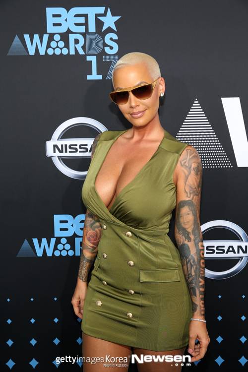 가수 겸 영화배우 앰버 로즈가 6월 25일(현지시간) 켈리포니아주 로스 앤젤레스 스테이플스 센터에서 개최 된 ‘2017 BET 어워즈’에 참석해 포즈를 취하고 있다.