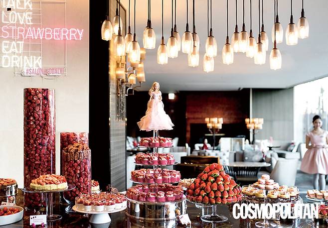 JW 메리어트 동대문 ‘살롱 드 딸기 밀라노’ 생딸기는 기본, 초콜릿 퐁뒤, 딸기 마카롱 등 고급스런 디저트의 향연을 즐길 수 있다. 4만8천원. 문의 2276-3336