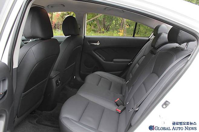 리어 시트는 60 : 40 분할 폴딩 방식으로 작동을 트렁크에 있는 손잡이로 하는 것은 기존 포르테와 같다. 트렁크 용량은 415리터에서 420리터로 늘었다. 기아차측은 캐디백 4개와 보스톤 백 4개를 적재할 수 있다고 주장한데 불가능할 것 같다. 캐디백만 세 개 정도 들어갈 수 있어 보인다.