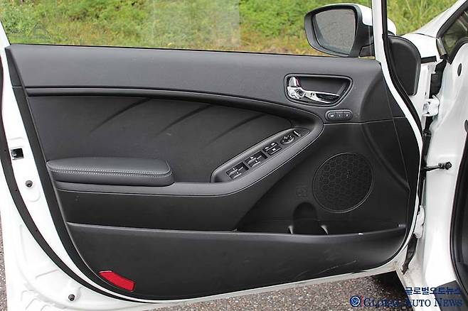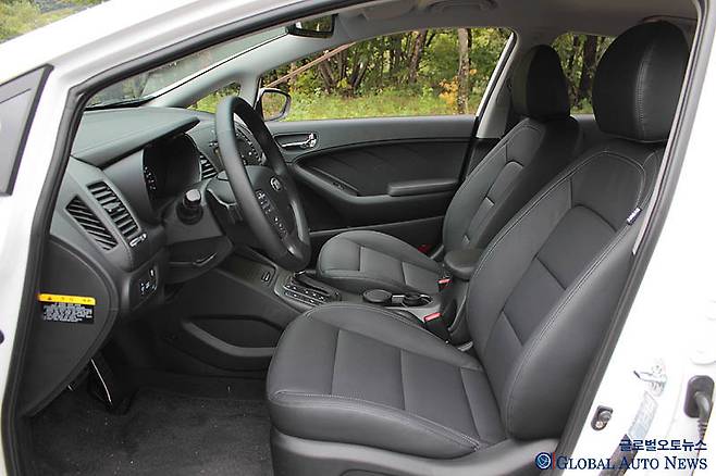 시트는 5인승. 포르테에서와 달리 운전석 시트 조절을 전동으로 하고 메모리 기능까지 있다. 거기에 앞좌석에 통풍 시트까지 적용했다. 포르테와 아반떼에는 통풍구만 있지만 K3에는 냉방 기능까지 있다. 앞좌석 헤드레스트가 슬라이딩 방식이다. 뒷좌석 열선도 사치스럽기는 마찬가지다.