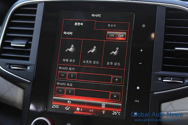 플렉스 웨이브라는 독특한 시스템을 적용한 새로운 마사지 시스템도 눈길을 끄는 품목이다. 와이어 4개와 모터가 들어가 여러 스텝으로 강도를 다양하게 조절한다. 최근 링컨 MKX도 마사지 기능을 강화해 선 보였는데 과연 사용자들로부터 호응을 얻을지는 지켜 봐야 할 것 같다. 이런 고가의 장비를 채용할 수 있는 것은 르노삼성이 르노닛산얼라이언스의 일원이기 때문이다. 오늘날 자동차를 개발하는 것은 하나의 조직만으로 하지 않는다. 가능한 모든 수단을 동원해 글로벌 차원에서 협업을 한다. 그렇게 해서 더 높은 상품성을 더 합리적인 가격에 제공하고 있다.
