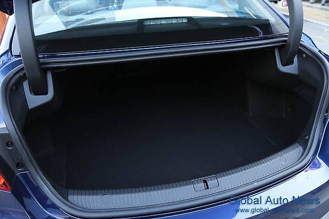 세단이면서 다양한 수납공간이 눈길을 끈다. 센터 콘솔 박스를 열면 앞쪽에 두 개의 패트병을 넣을 수 있는 쿨 박스가 있다. 트렁크 아래쪽에도 꾀 큰 공간이 있다. 이 외에도 실내 곳곳에 크고 작은 수납공간이 많다. 공간을 낭비하지 않고자 하는 시도가 보인다.