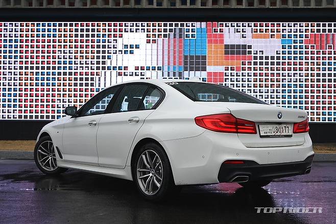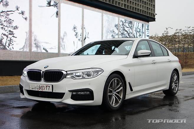 시승한 모델은 6630만원의 뉴 520d M 스포츠 패키지다. 5시리즈에서 가장 저렴한 가격이 책정된 기본형 트림이다. M 패키지가 적용된 외관은 1억원을 호가하던 기존 5시리즈 상급 라인업을 연상케 한다. 공격적인 디자인의 전면 범퍼와 새롭게 추가된 측면 에어브리더, 18인치 휠로 인해 BMW 특유의 역동적인 이미지가 강조된다.
