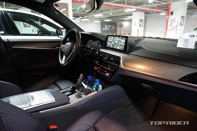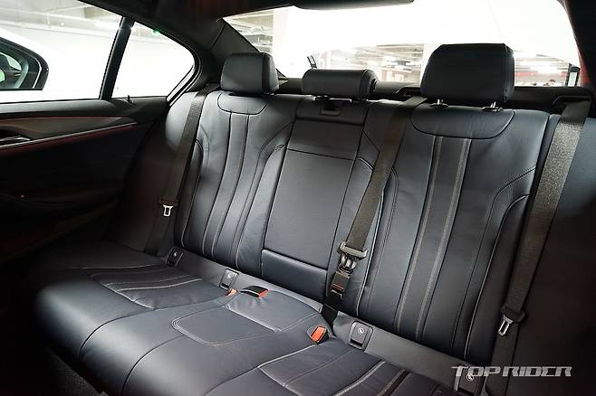 실내공간은 기존 5시리즈와 유사하다. 대시보드 하단과 센터페시아의 디자인, 그리고 루프라인을 위해 일부 공간이 희생됐다. 또한 1열 시트 사이즈가 확대되며 실내공간은 기존 5시리즈와 유사하게 느껴진다. 2열 등받이는 다소 꼿꼿하게 느껴지는데, E클래스와 A6 등 해당 체급 신차에서 동일하게 나타나는 현상이다.