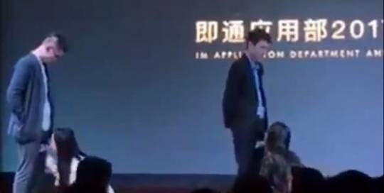 텐센트의 게임 부서는 당시 2명의 남성이 가랑이 사이에 병을 두고 2명의 여성이 입을 이용해 병뚜껑을 따는 게임을 진행했다. 다분히 성행위를 연상시키는 게임이다. 무대 밑 200명의 직원은 '힘내라! 힘내라!' 등의 환호성을 질렀다.
