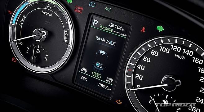 실내에서는 하이브리드 전용 슈퍼비전 클러스터를 탑재해 주행정보에 대한 시인성을 높이고, 배터리 충전량과 운전습관을 확인할 수 있는 에코 게이지, 관성 주행 안내 기능이 포함됐다. 또한 운전석 개별 공조 시스템이 적용됐다.