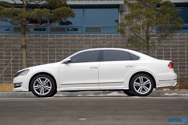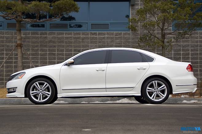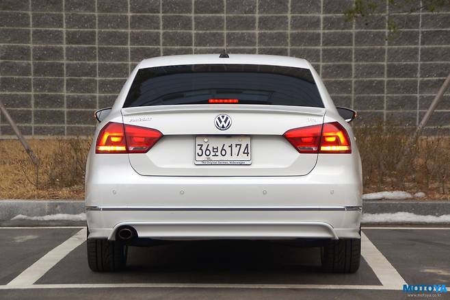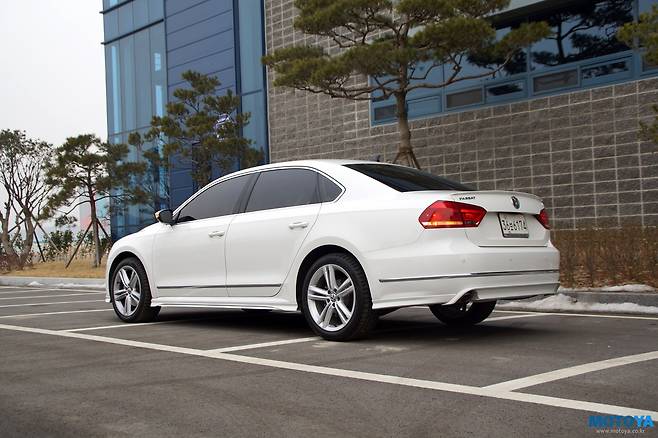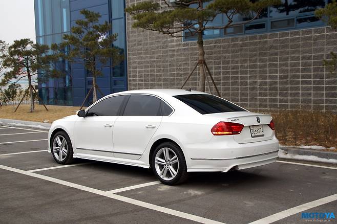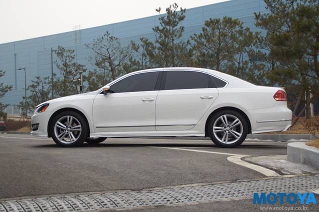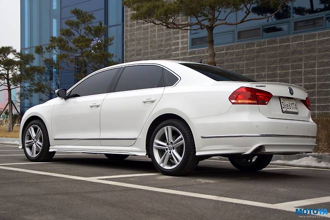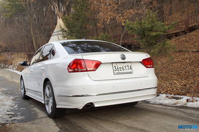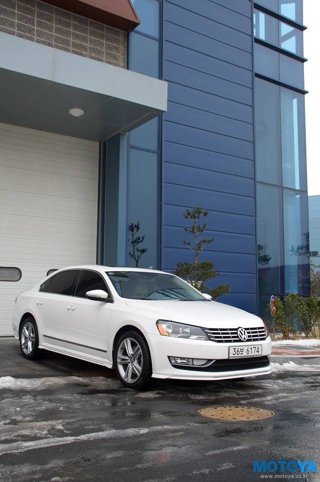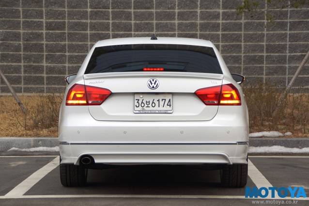 사이즈도 대폭 커져서 더욱 당당한 용모를 지니게 되었다. 해가 갈 수록 중형 세단들이 너도나도 몸집들을 키우고 있는 추세이기 때문에 중형 세단으로서는 비교적 컴팩트한 체구를 유지하고 있었던 파사트도 이런 흐름에 동참한 듯 하다. 여기에 시승차에는 단정한 디자인의 보디킷이 적용되어 있어서 소소하게나마 도전적인 스탠스를 만들어낸다.